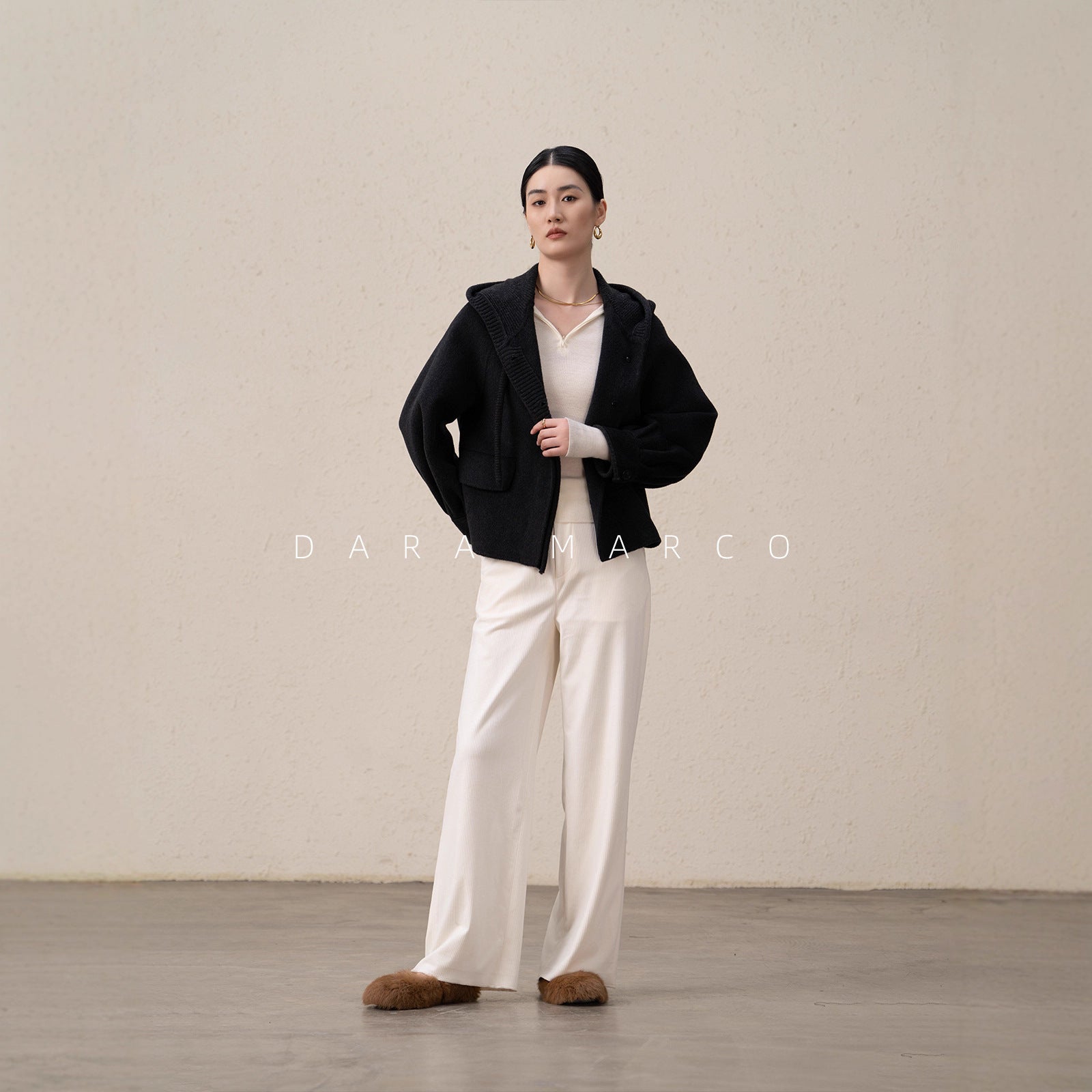 Double-Sided Cashmere Mulberry Silk Hooded Short Coat – Winter Fleece Jacket