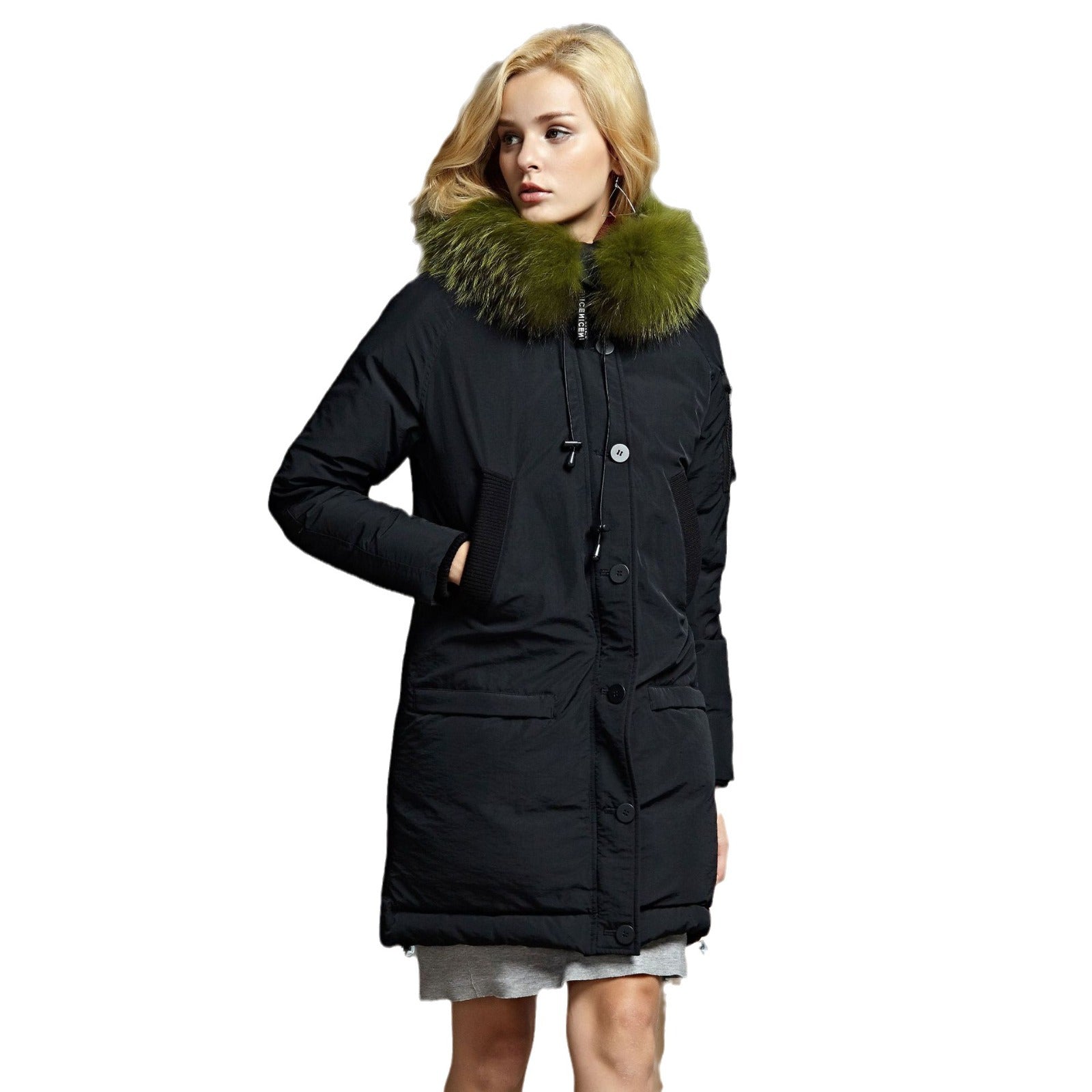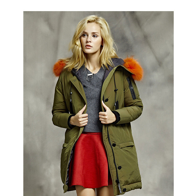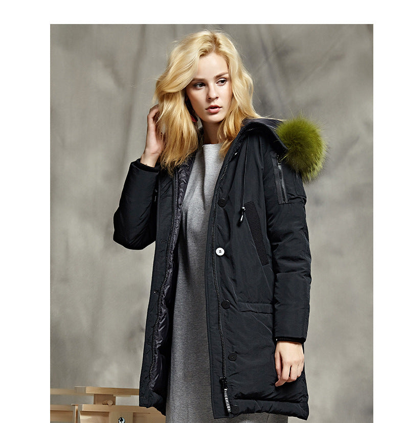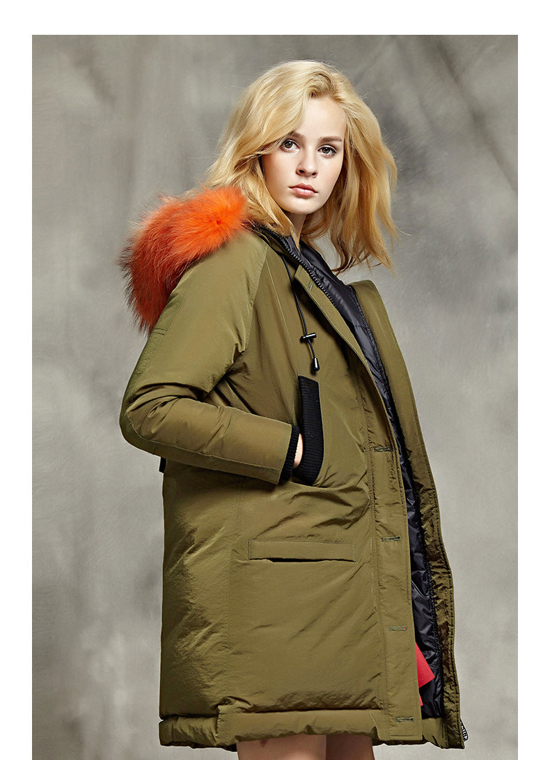 Style Mid-Length Down Jacket with Raccoon Fur Collar for Women