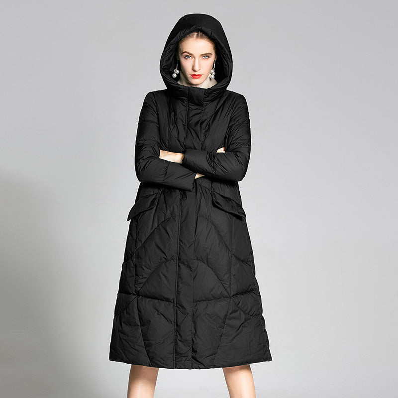 Elegant Winter Hooded Down Coat with Refined Warmth