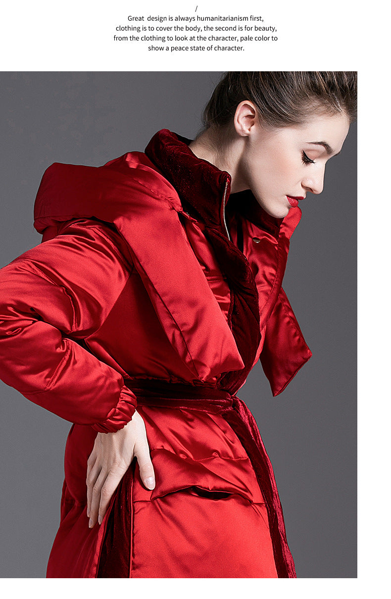 Women's Down Jacket2025New Year's Mid-Length Hooded Thickened Red Down Jacket White Duck Down Winter Women's Coat