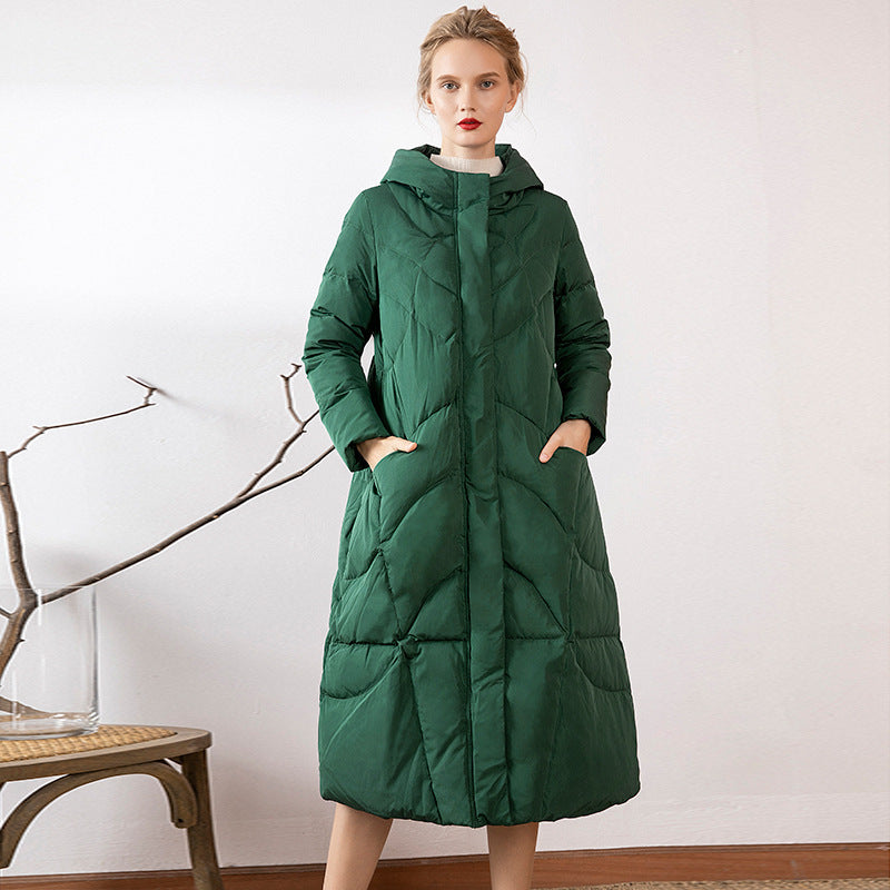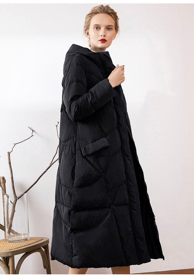 Women’s Long Hooded 90% Duck Down Winter Coat