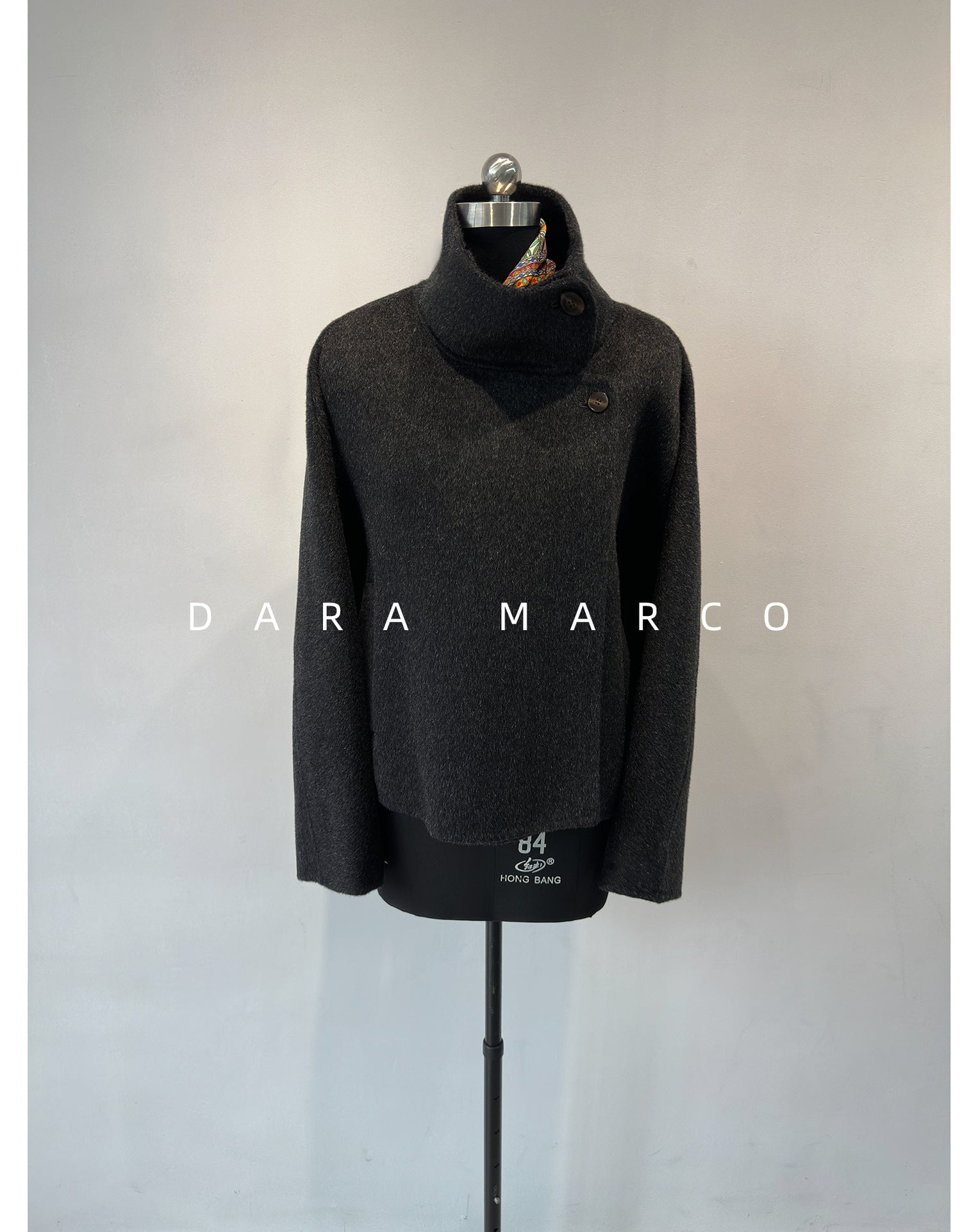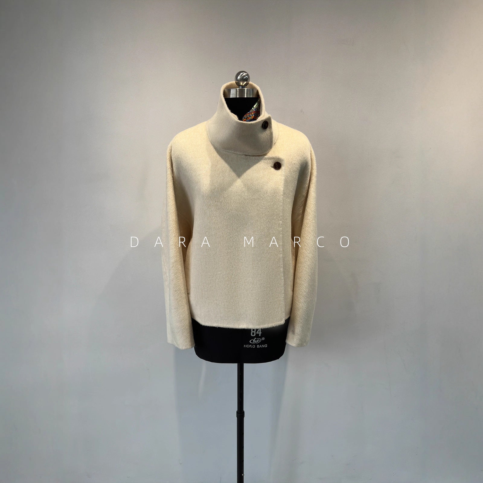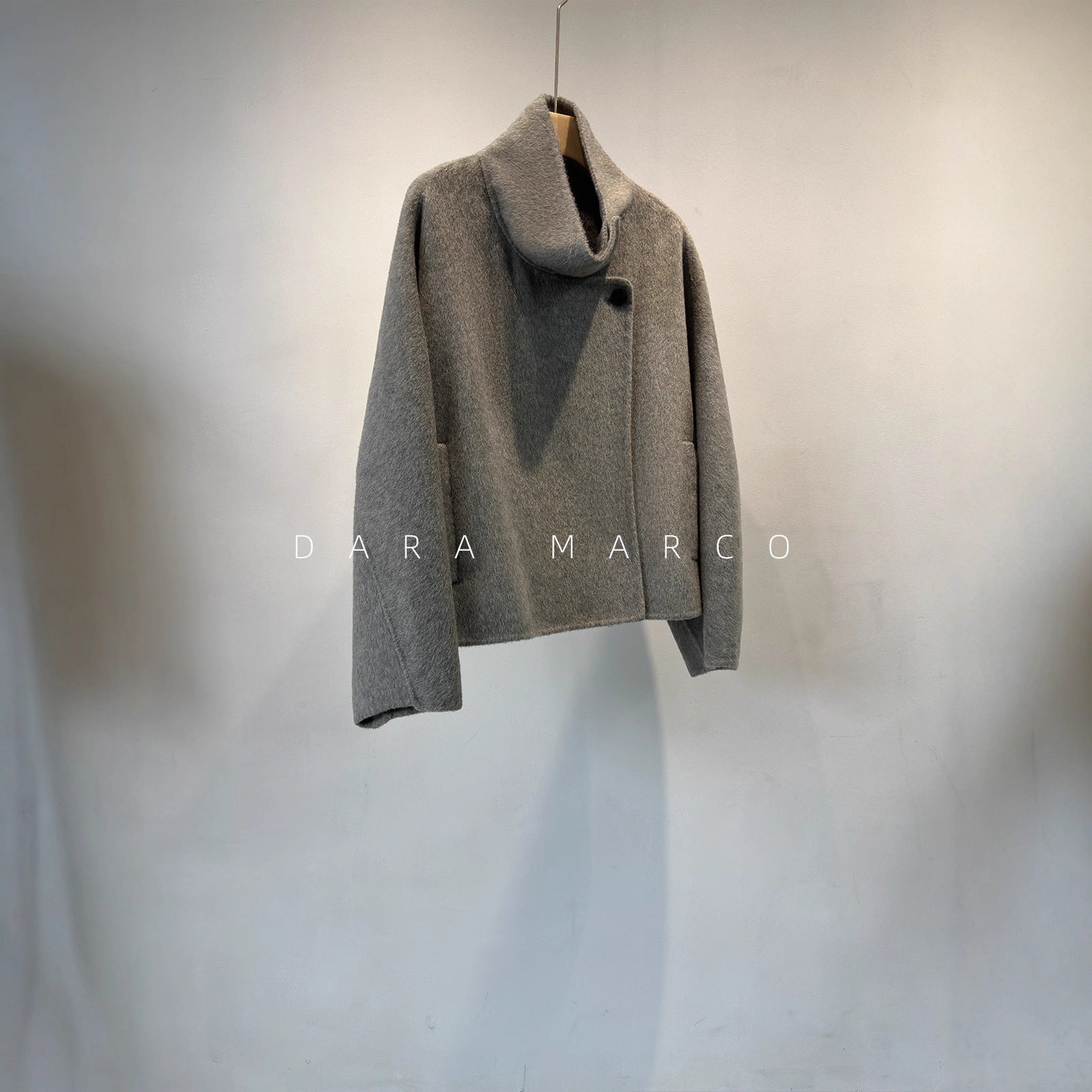 Premium Wool Coat – French Short Cigarette Collar One-Button Jacket